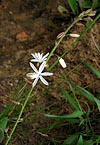 Trachyandra saltii - Grasslike, up to 50 cm high. Rootstock vertical. Leaves of several lengths, up to 50 cm long, hairless or with mixed long straight and short curly hairs, base tubular, membranous. Inflorescences often two or more on same plant, unbranched, leaning outwards at base, then erect, many-flowered, up to 40 cm long. Flower stalk up to 1,5 cm long. Perianth segments c 1 cm long. Fruit spherical, narrowing to base, c 5 mm diam, hairless; seeds smooth, grey.