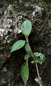 Achyranthes aspera - Up to 120 cm high. More robust than A. sicula, sometimes almost shmbby with longer stems, the denser, larger, darker and more numerous flowers of which only separate slightly. Stems stouter, four-ribbed. Stem and leaves hairy. Leaf-blades broadly oval, up to 6 cm long x 4 cm wide, stalks very short, margins slightly wavy, tips rather blunt.