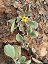 Aizoon glinoides - Herbaceous, with long tap-root and wide spreading prostrate branches, all parts closely hairy, grey when young. Leaves broad, very variable in size, blades oval, blunt, tapering below to narrow stalk, up to 3 cm long x 2 cm wide. Flowers stalkless, arranged along stem in leaf-axils. Sepals 4—5, persistent, petals absent, stamens numerous in clusters fruit copious with 4—5 chambers and numerous seeds, reddish sepals turning inwards.