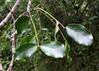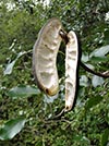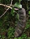 Afzelia cuanzensis - (Umkolikoli, Umshafunti, Rhodesian Mahogany) Good-sized tree, hairless except for floral parts. Leaf with slender stalk and c four pairs of oval, shortly-stalked leaflets c 7 cm long x 4 cm wide; no terminal leaflet. Flowers few, well spaced. Calyx tube narrow, c 2 cm long or less, lobes four, 2 cm long x 1 cm wide, finely downy. Single petal up to 4 cm long, narrow-stalked, much broadened, white or pale pink. Fruit a woody pod, partitioned, with up to c 10 seeds each with coloured cup-shaped fleshy aril.