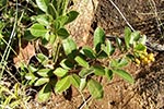 Rhus ernestii - Low-growing or sprawling small shrub, seldom more than 30 cm high, shoots usually unbranched. Leaf-stalk c 1 cm long; leaflets broadly lance-shaped tapering to narrow tip, softly hairy below with prominent veins, darker and less hairy above, margins entire, up to c 7 cm long x 2,5 cm wide. Inflorescence terminal, much-branched, somewhat exceeding leaves; fruits dark, c 5 mm diam.