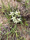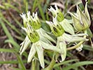 Asclepias eminens - Slender half-erect or prostrate shoots, occasionally branching at base, almost hairless. Leaf-stalk very short; blade up to 11 cm long x 4 mm wide, usually narrower, margins recurred. Inflorescence terminal with up to c eight rather large flowers on stalks c 2,5 cm long; corolla lobes reflexed, c 1,4 cm long, sharp-pointed, green; corona lobes long and narrow, erect and closely clustered forming a column, white or white-tipped.