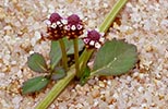 Lippia nodiflora - Trailing, slightly woody, roughly hairy throughout. Short erect leafy shoots arise at nodes. Leaves oval, tapering to base, blunt, margins sharply toothed in upper halt c 3 cm long x 1,2 cm wide. Inflorescence dense, oval, c 7 mm diam and twice as long, on erect stalk up to 5 cm high; flowers numerous, minute; corolla mauve.