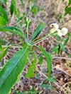 Duvernoia aconitiflora - Large shrub. Leaves opposite, stalk c 1 cm long, blade oval, broadest at or just below middle, up to 10 cm long x 3,5 cm wide. Inflorescence terminal or lateral with few well-spaced flowers. Calyx c 4 mm long, lobes oval, about equalling tube. Corolla two-lipped, downy, whitish with dull red markings on lower lip; tube very short, bell-shaped; upper lip arched, hooded, shortly two-lobed, up to 2 cm long; lower lip three-lobed, side lobes curved with basal bulges, c 8 mm long. Stamens two, protruding, anthers two-chambered. Ovary round, hairy, two-chambered, each chamber with two ovules. Fruit shortly stalked.